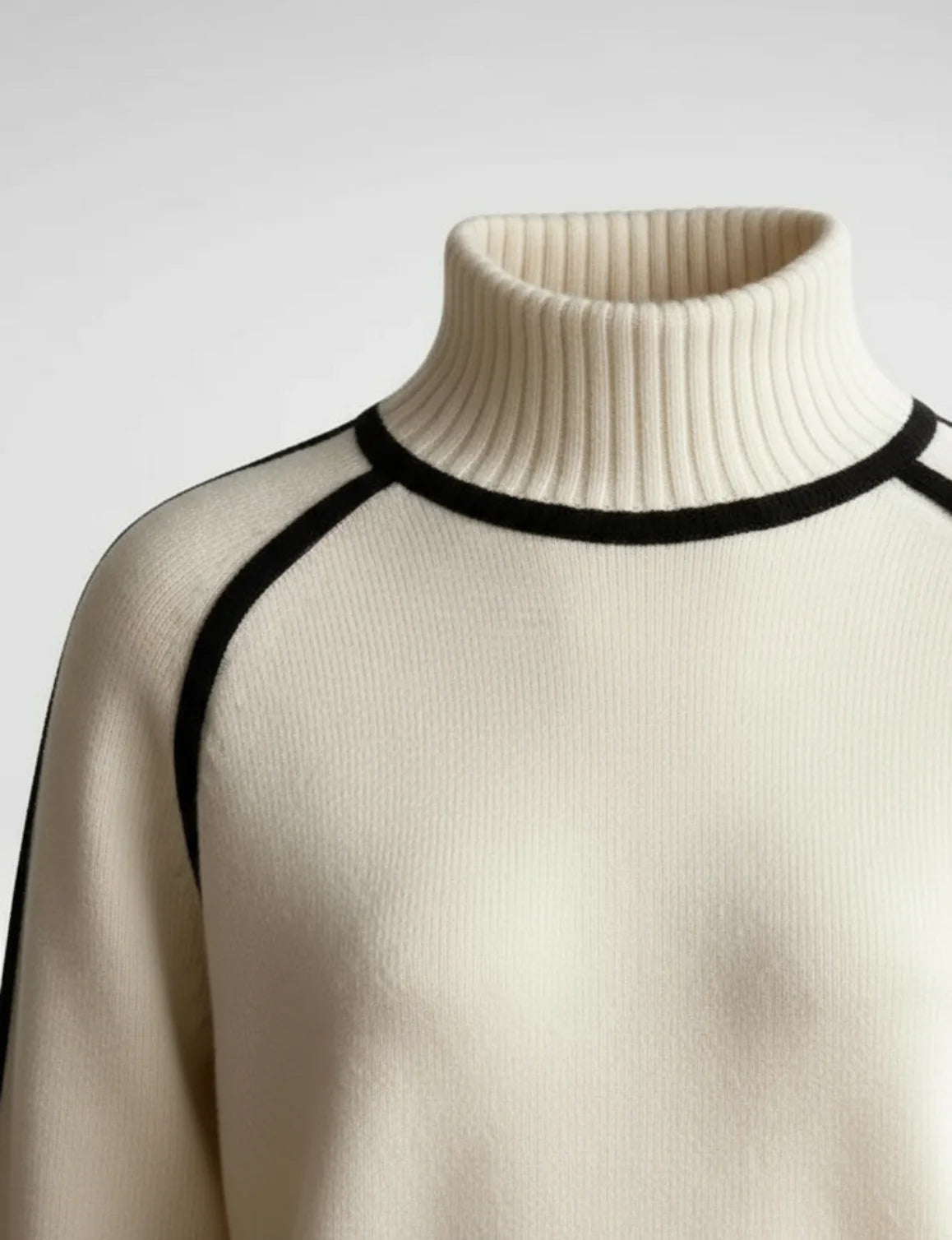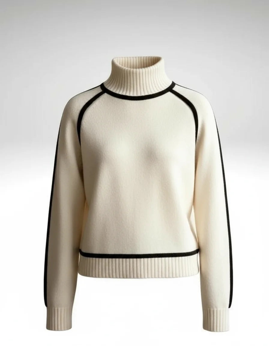 The beautifully crafted high-neck adds an extra layer of warmth and style, providing both comfort and a refined look. The ribbed finish ensures a snug fit, while maintaining softness, making it ideal for layering or wearing on its own. This thoughtful detail highlights the expert craftsmanship and adds to the overall luxurious feel of the garment.