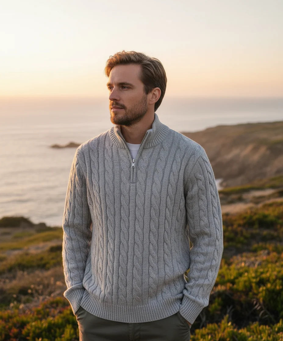 Crafted from high-quality yarn, this sweater blends rich texture with exceptional comfort. The cable-knit pattern adds depth and timeless character, while the dense weave offers warmth and durability. A modern take on a classic design — refined, comfortable, and built to last.